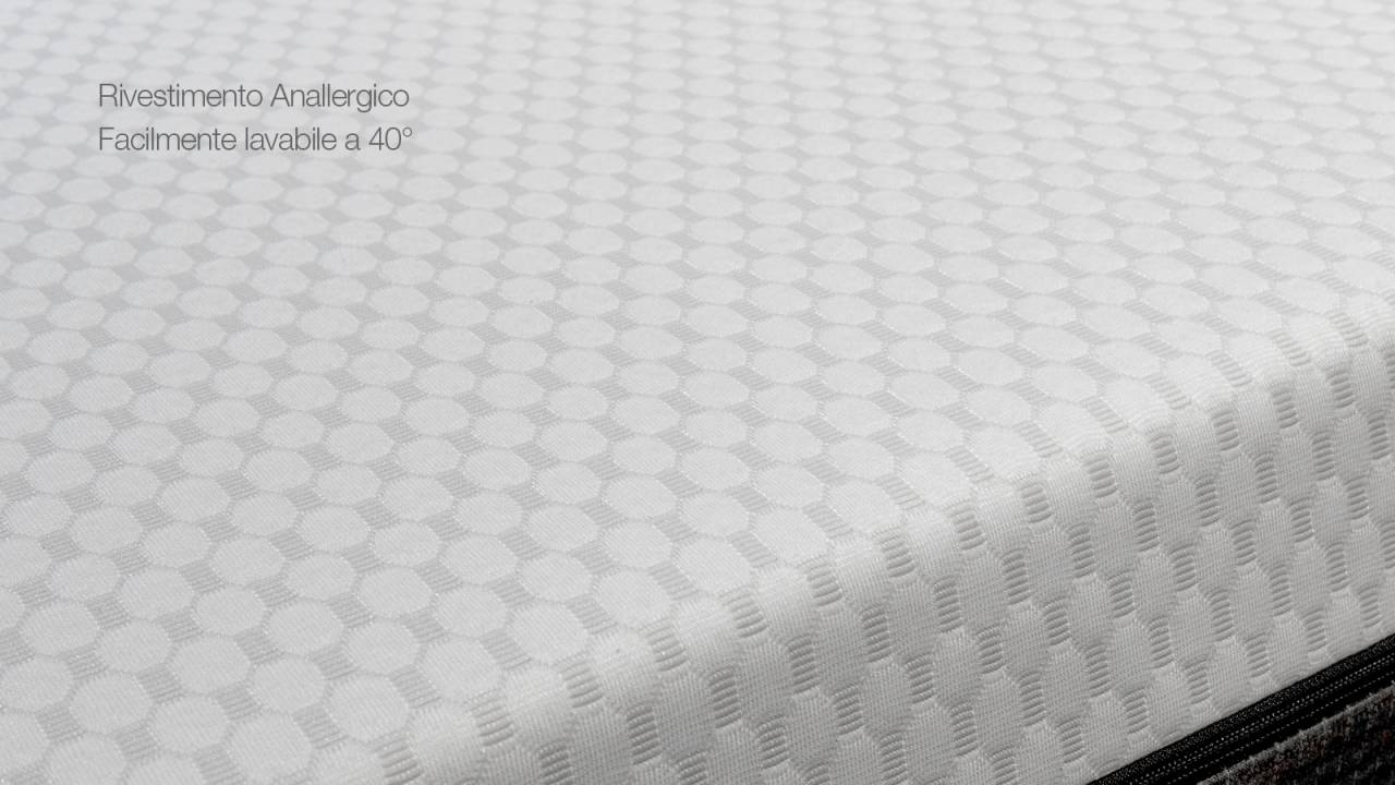 Materasso alto 22cm, si adatta perfettamente al corpo in riposo, sostenendolo in maniera corretta e garantendo un sonno rigenerante per tutta la notte. Materiali privi di sostanze nocive all’organismo umano poichè realizzati con processi di lavorazione eco-compatibili, senza uso di gas CFC.